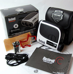 Bushnell Medalist levereras med väska, putsduk, halsrem, batteri och instruktionsbok.